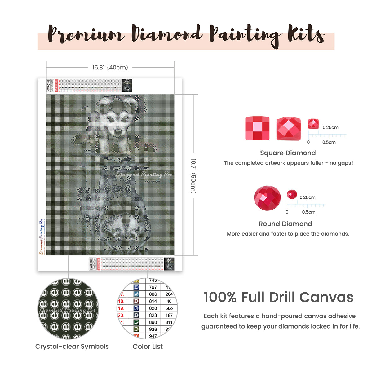Full Drill Canvas (15.8"x19.7" / 40x50cm): Immerse yourself in the full diamond painting experience with the perfect canvas size for detailed masterpieces. Crafted with care using premium HD quality tarpaulin canvas, it's durable, waterproof, moisture-proof, and wrinkle-free, ensuring a stress-free painting process. Crystal-clear symbols provide easy guidance, while poured-glue canvas adhesive secures your diamonds, maintaining pattern visibility with the transparent cover.