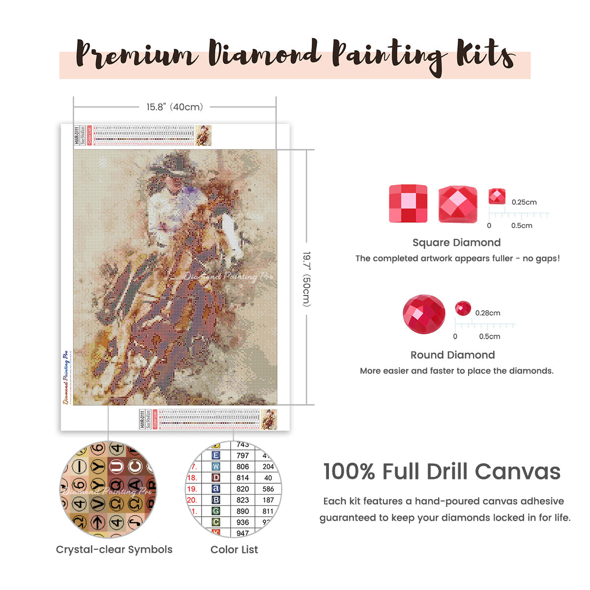 Full Drill Canvas (15.8"x19.7" / 40x50cm): Immerse yourself in the full diamond painting experience with the perfect canvas size for detailed masterpieces. Crafted with care using premium HD quality tarpaulin canvas, it's durable, waterproof, moisture-proof, and wrinkle-free, ensuring a stress-free painting process. Crystal-clear symbols provide easy guidance, while poured-glue canvas adhesive secures your diamonds, maintaining pattern visibility with the transparent cover.