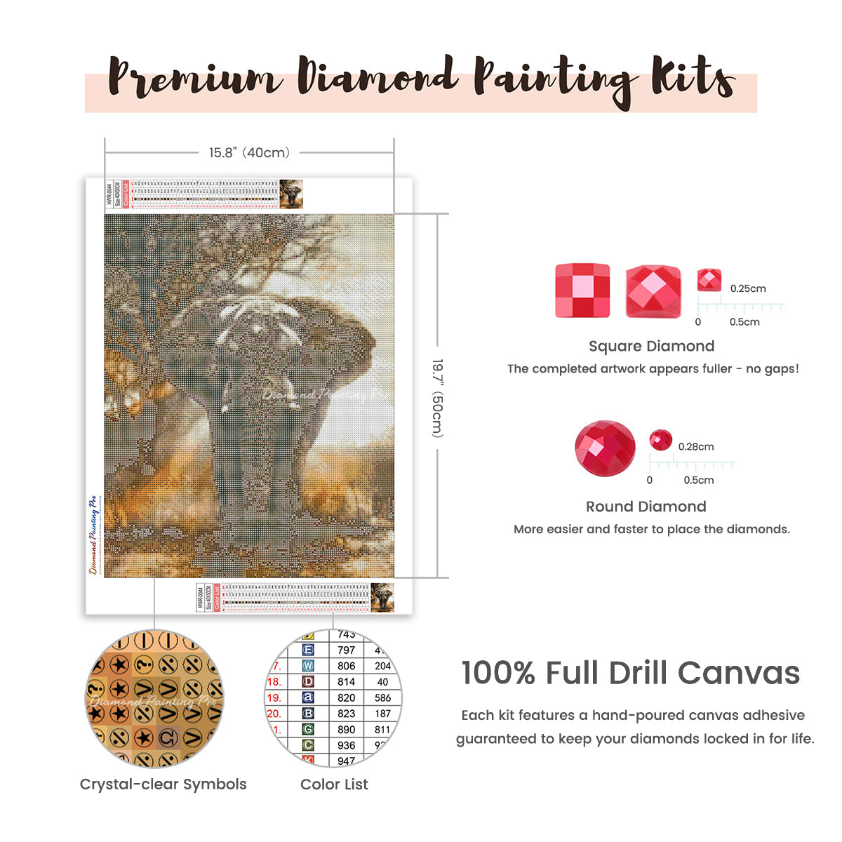 Full Drill Canvas (15.8"x19.7" / 40x50cm): Immerse yourself in the full diamond painting experience with the perfect canvas size for detailed masterpieces. Crafted with care using premium HD quality tarpaulin canvas, it's durable, waterproof, moisture-proof, and wrinkle-free, ensuring a stress-free painting process. Crystal-clear symbols provide easy guidance, while poured-glue canvas adhesive secures your diamonds, maintaining pattern visibility with the transparent cover.