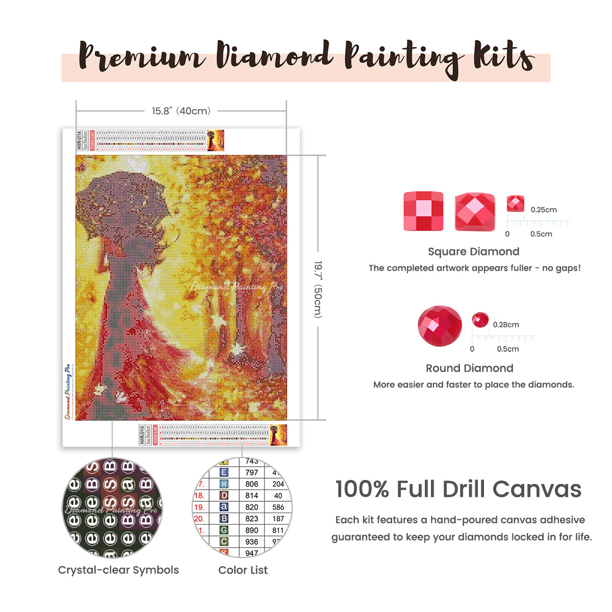 Full Drill Canvas (15.8"x19.7" / 40x50cm): Immerse yourself in the full diamond painting experience with the perfect canvas size for detailed masterpieces. Crafted with care using premium HD quality tarpaulin canvas, it's durable, waterproof, moisture-proof, and wrinkle-free, ensuring a stress-free painting process. Crystal-clear symbols provide easy guidance, while poured-glue canvas adhesive secures your diamonds, maintaining pattern visibility with the transparent cover.
